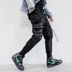 Ribbons Men Jogger Sweatpants Men’s Cargo Pants Streetwear Hip Hop Casual Black Harem Pants Male Harajuku Fashion Trousers