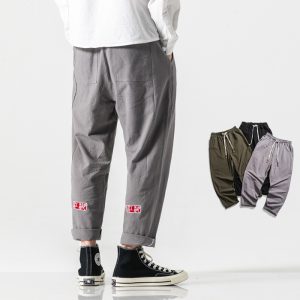 Streetwear Cotton Linen Cross-Pants Men Trousers Men Pants Jogger Ankle-length Hip Hop Sweatpants Joggers Cargo Pants Men