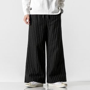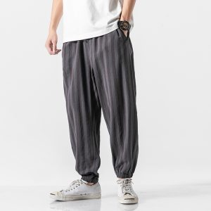 New Harem Pants Men Korean Style Casual Loose Cotton Linen Striped Sweatpants Jogger Pants Streetwear Trousers Men
