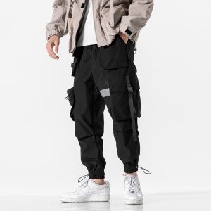 New Designer Casual Men’s Jogging Pants Cotton Men’s Pants Ribbon Fashion Spring Streetwear Overalls Men Pants Multi-Pocket