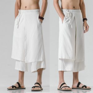 Solid Color Men Wied Leg Trousers Casual Harem Pants Cotton Linen Streetwear Japanese Style Jogging Pants Male Big Size 5XL