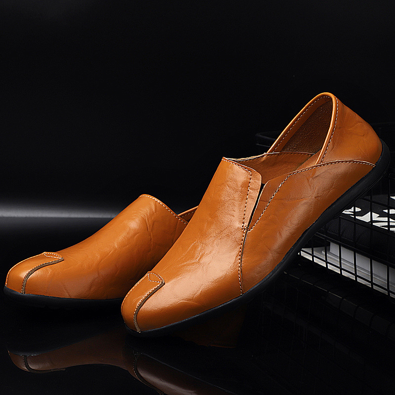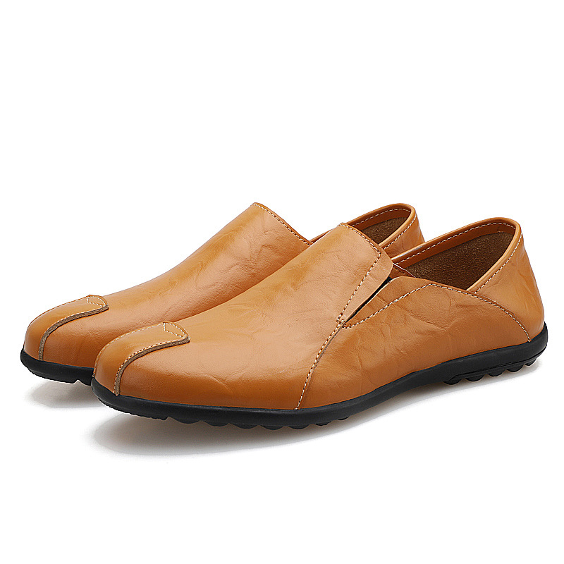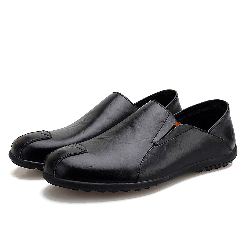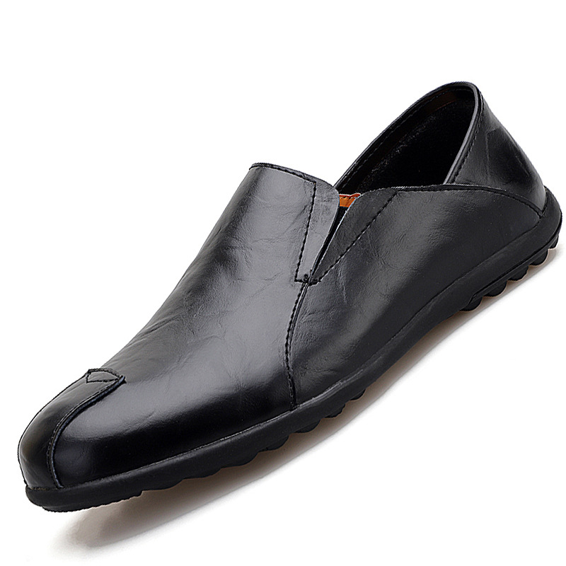 Autumn Genuine Leather Men Casual Shoes Mens Loafers Slip on Breathable Flat Shoes Black Driving Shoes father Plus size shoes