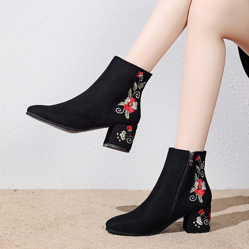 Cheap Ankle Boots, Buy Quality Shoes Directly from China Suppliers:Winter Shoes Women High Heels Boots Warm Shoes Women Embroider Vintage Party Ankle Boots Ladies Square Heel 6cm Black Boots