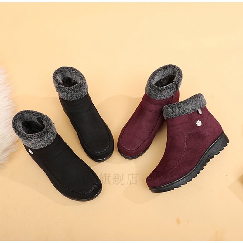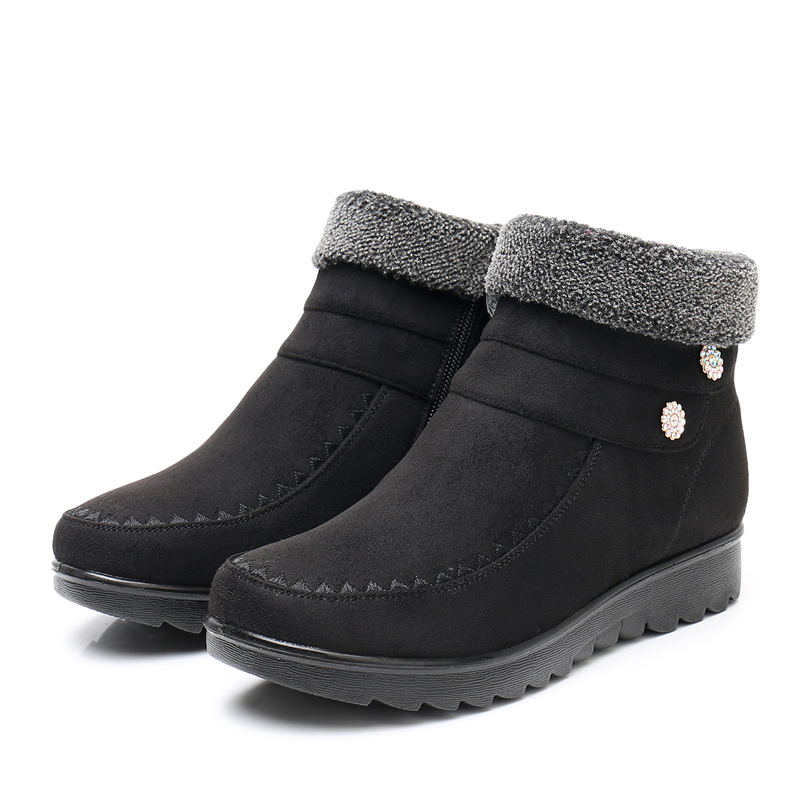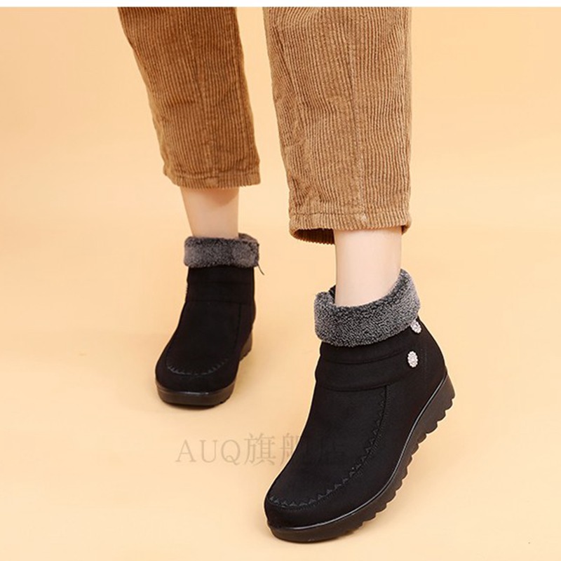 Middle-aged and elderly mother’s cotton shoes women’s winter plus velvet thick warmth anti-skiing soft bottom flat snow boots