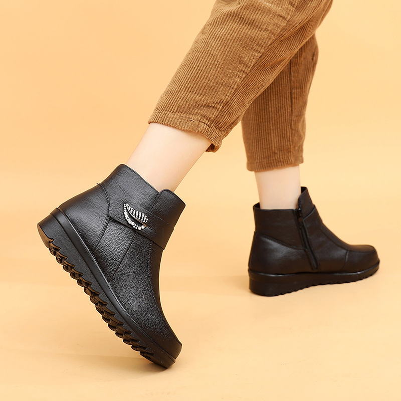 New winter women’s cotton shoes plus velvet mother’s boots soft sole and ankle snow boots flat-bottom non-slip cotton shoes