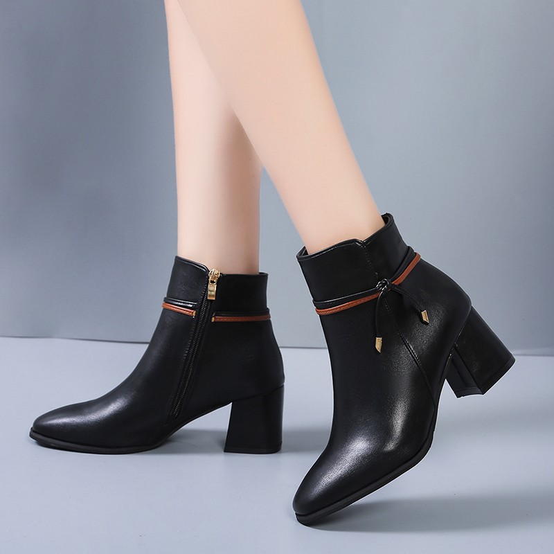 Autumn Winter Shoes Women High Heels Ankle Boots Ladies Pointed Toe Square Heel 5cm Black Party Shoes Women Short Boots