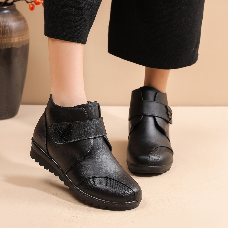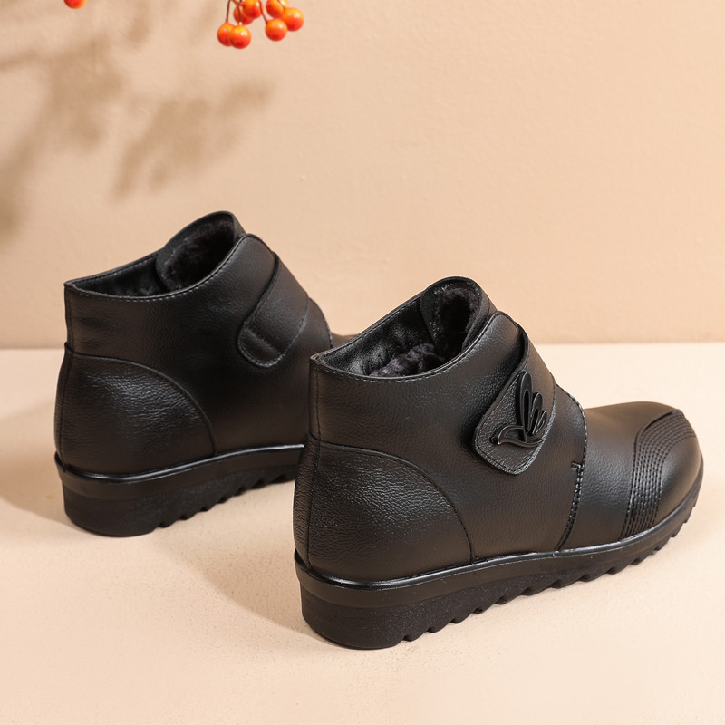 Winter mother’s shoes plus velvet warm leather middle-aged leather shoes flat non-slip female snow boots and ankle outdoor boots