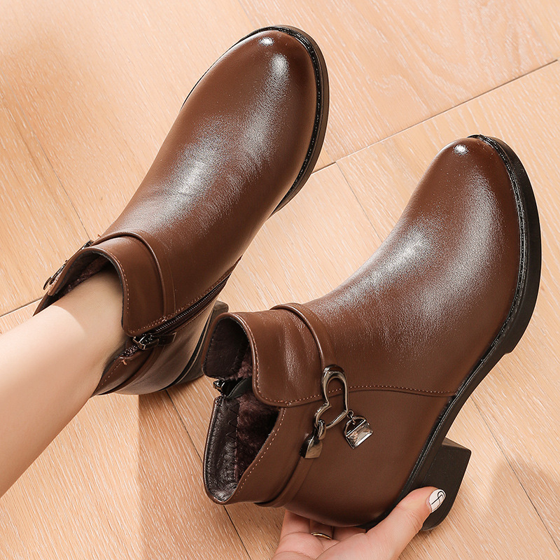 women genuine leather winter Fur warm snow boots female flat heels casual ankle boots mother soft bottom non-slip cotton shoes