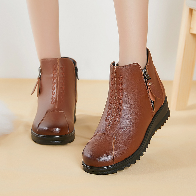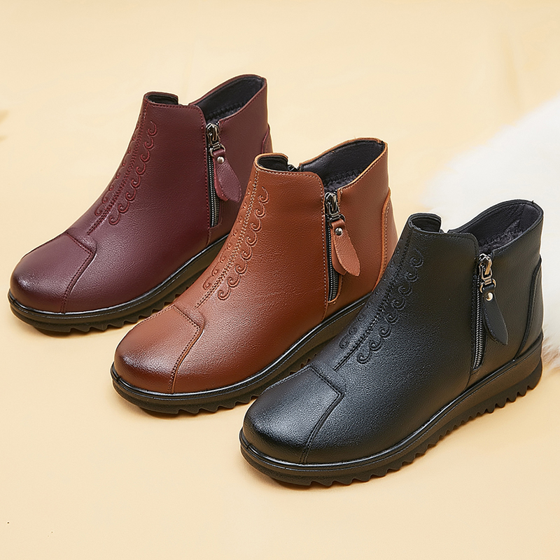 Mother shoes soft sole comfortable winter leather middle-aged shoes plus velvet non-slip warmth and ankle female snow boots