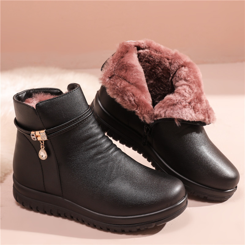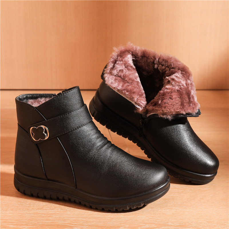 Mother’s cotton shoes winter plus velvet warm middle-aged and elderly women’s shoes flat non-slip leather woman ankle snow boots