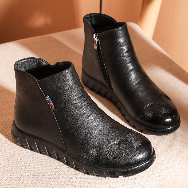 Winter mother’s cotton shoes and velvet middle-aged and elderly women’s shoes soft-soled non-slip women’s leather ankle boots