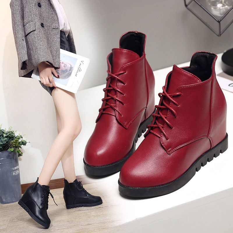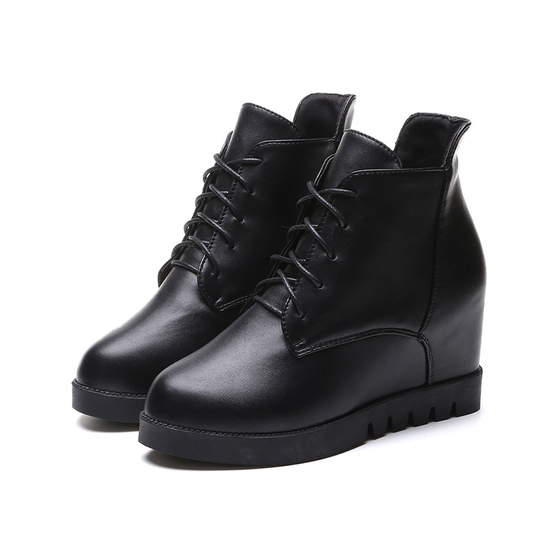 women’s short boots autumn and winter new lace-up leather shoes height increasing thick bottom Non-slip women’s boots