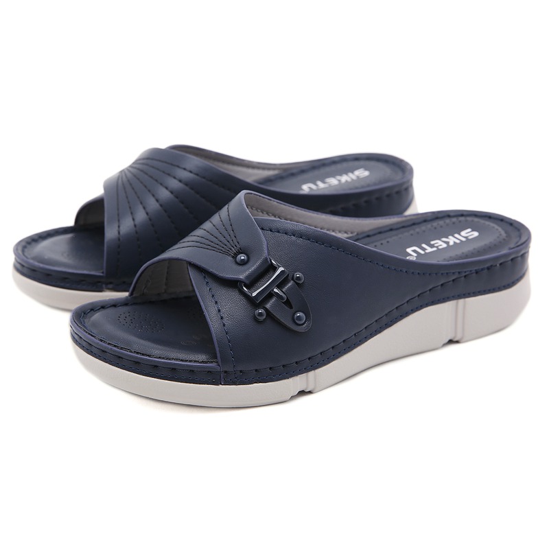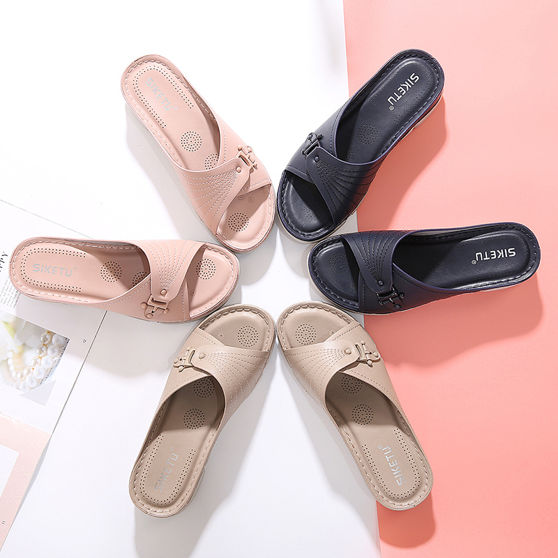 Cheap Slippers, Buy Quality Shoes Directly from China Suppliers:Summer leather soft soled beach women’s slippers lightweight and comfortable mid heel wedges non slip open toe women’s sandals