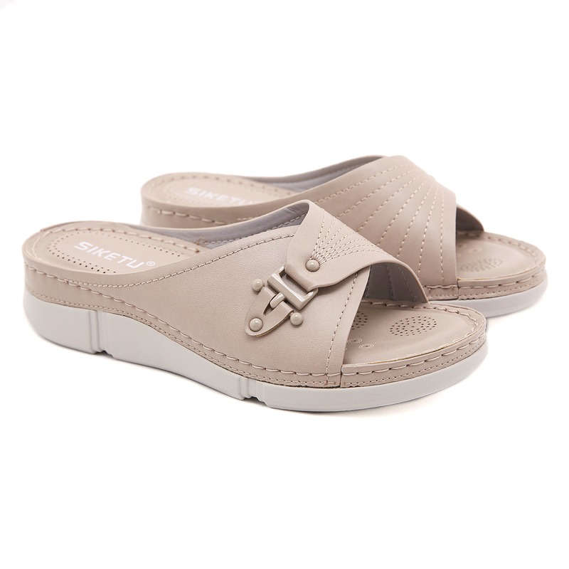 Summer leather soft-soled beach women’s slippers lightweight and comfortable mid-heel wedges non-slip open-toe women’s sandals