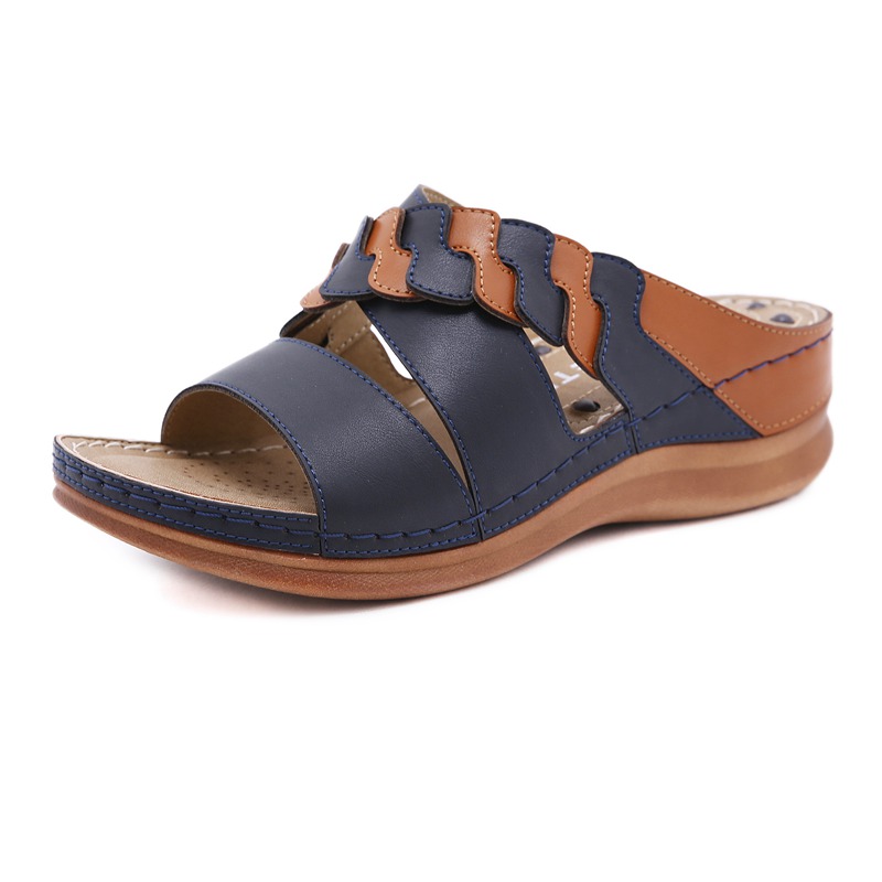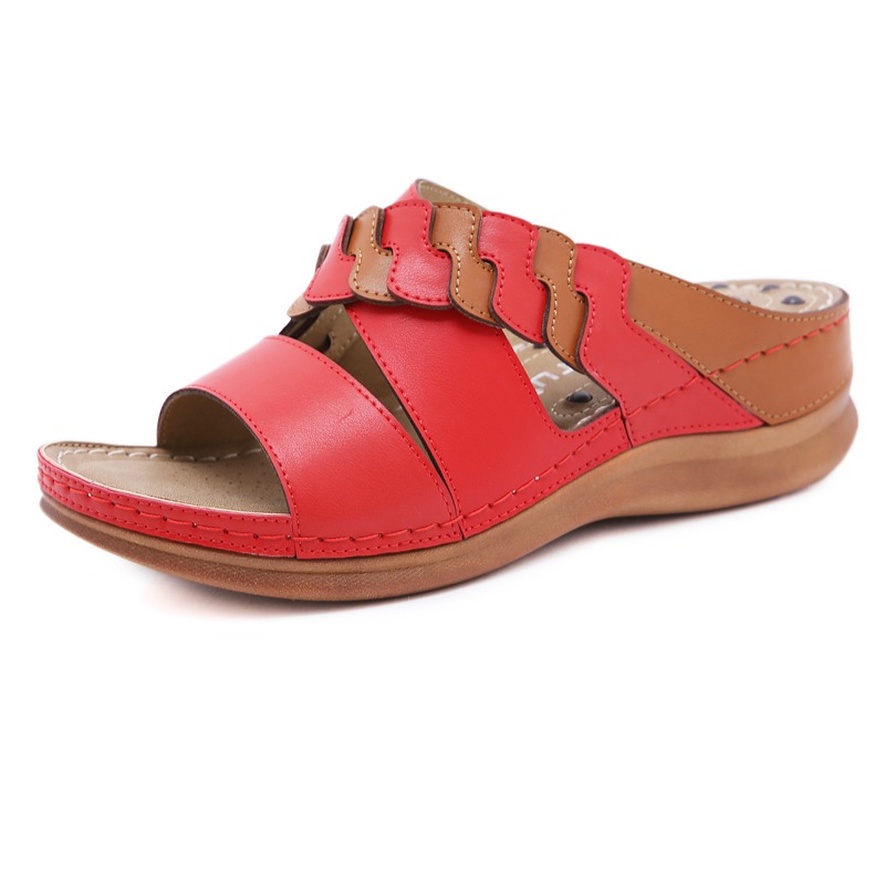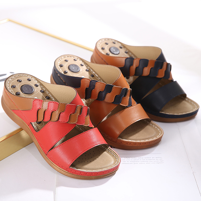 Summer leather soft-soled beach women’s slippers lightweight and comfortable mid-heel wedges non-slip open-toe women’s sandals