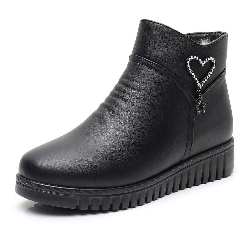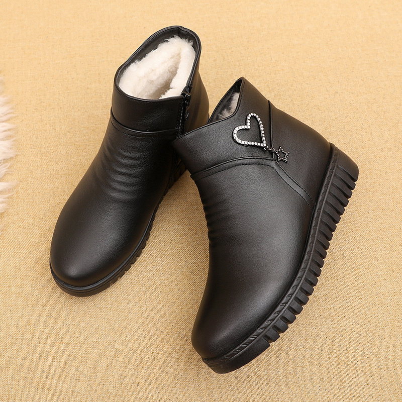 Winter leather soft-soled women’s short boots flat-bottomed plus velvet warm mother snow boots non-slip elderly cotton shoes