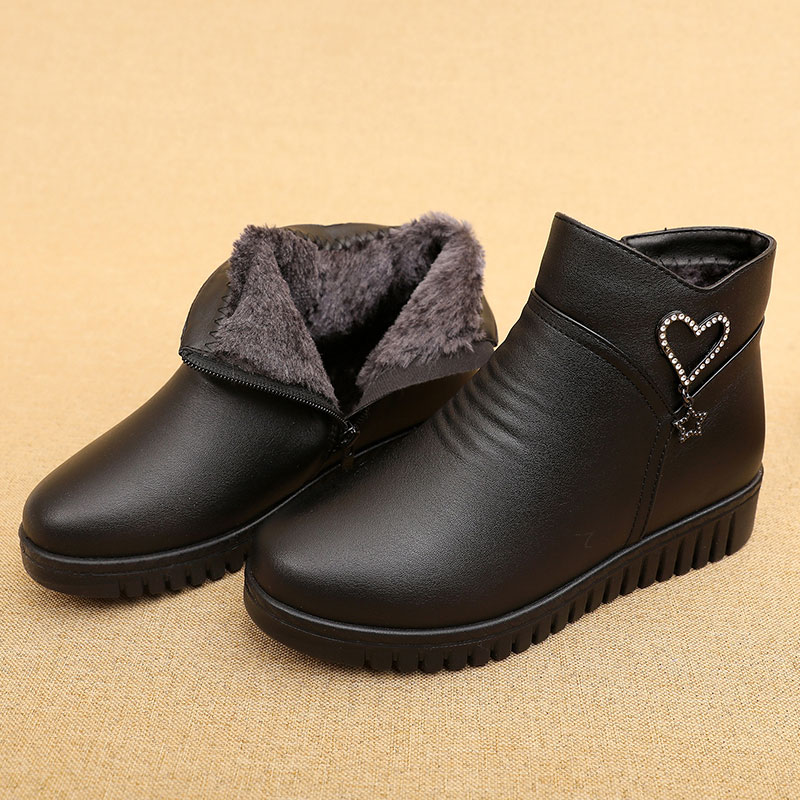Cheap Ankle Boots, Buy Quality Shoes Directly from China Suppliers:Winter leather soft soled women’s short boots flat bottomed plus velvet warm mother snow boots non slip elderly cotton shoes