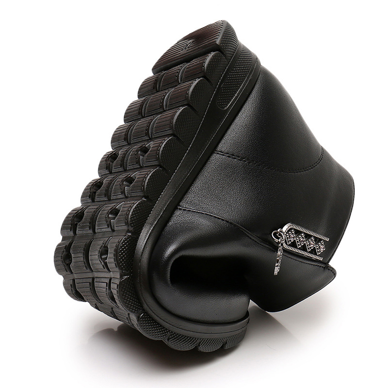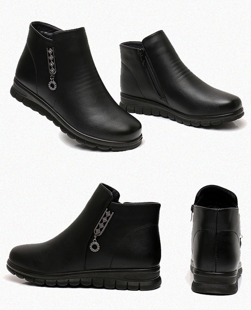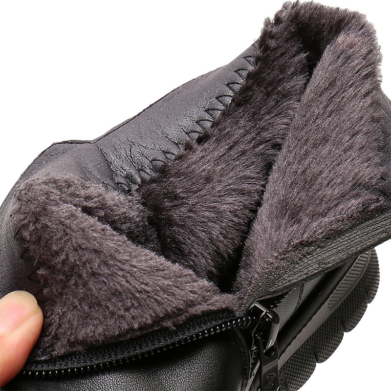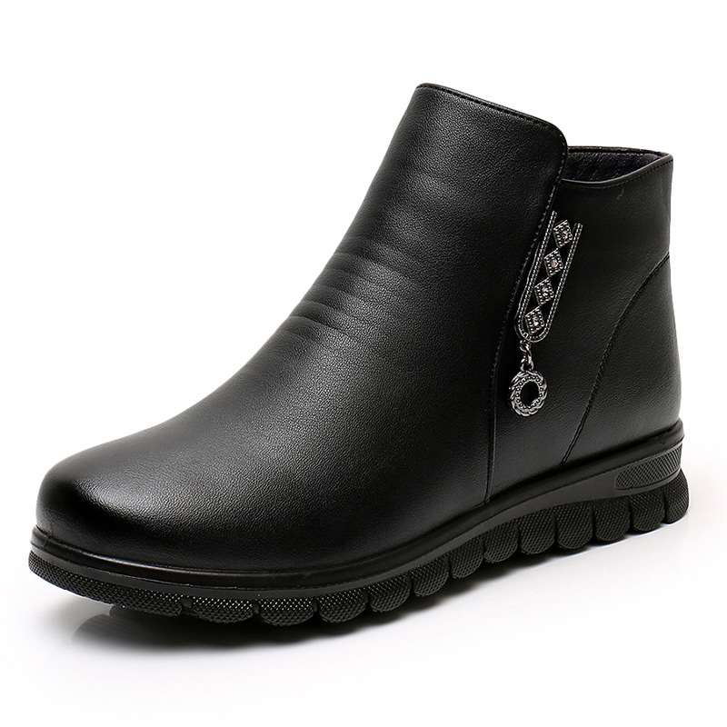 Mother’s cotton shoes winter flat leather warm and velvet women snow boots middle-aged and elderly non-slip soft-soled boots