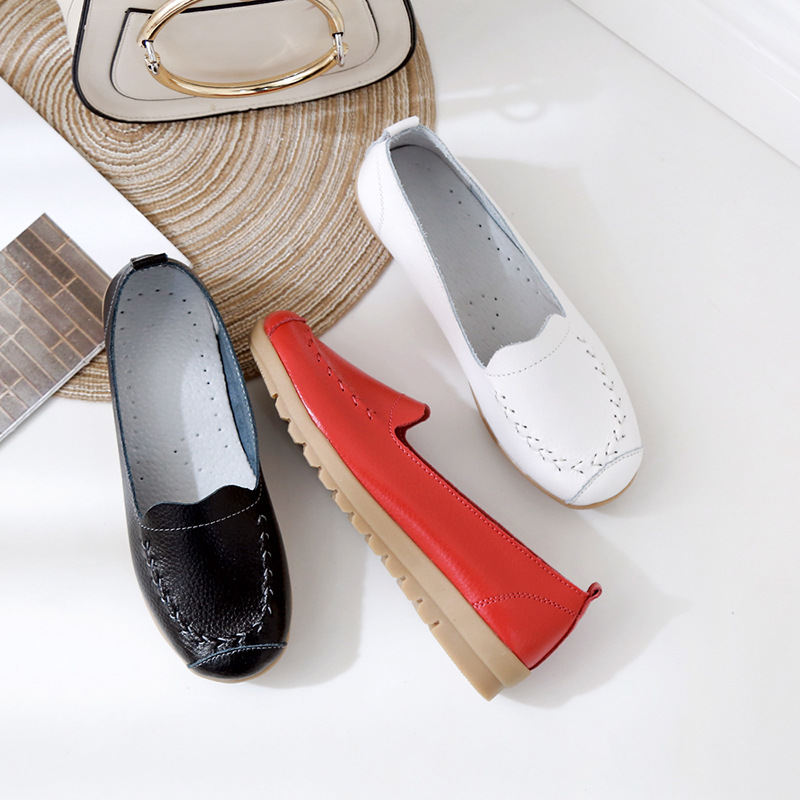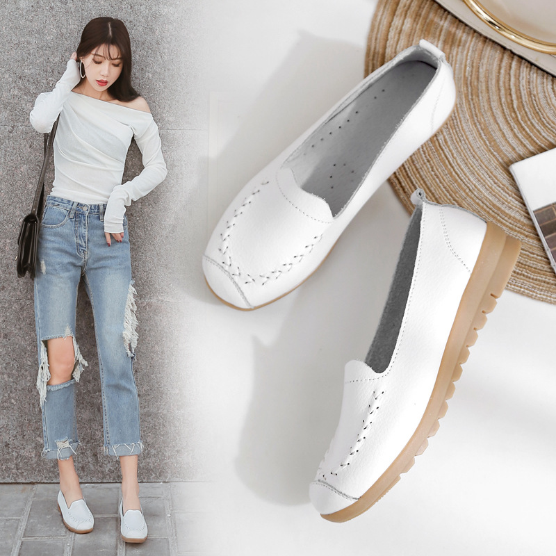 spring sneakers women Shoes Woman Genuine Leather Breathable Flat Shoes Female Casual Work Ballet Flats Walking Shoes Large size