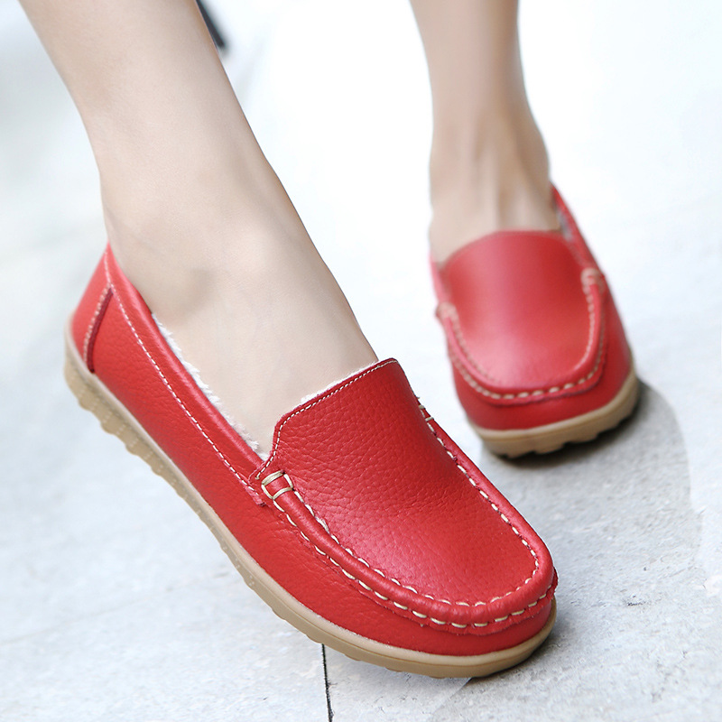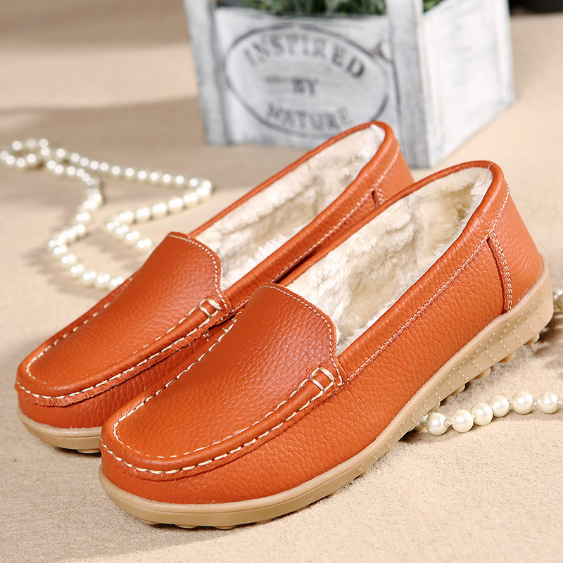 Women Shoes Genuine Leather Plus Velvet Warm Female Flat Shoes Women Solid Color Casual Work Ballet Flats ladies shoes