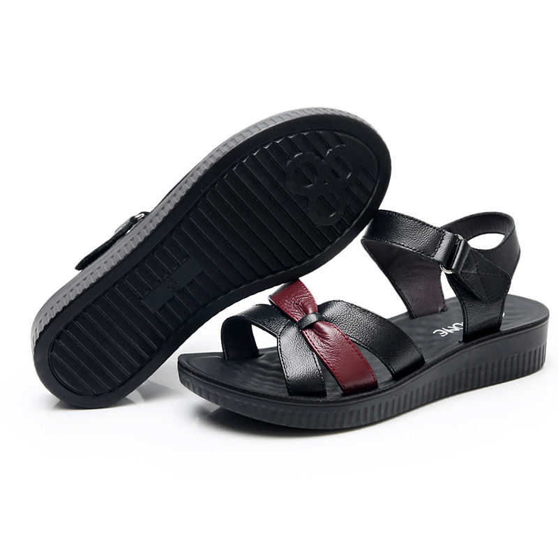 Summer women’s sandals flat soft leather middle-aged and elderly sandals lightweight and comfortable flat mother shoes