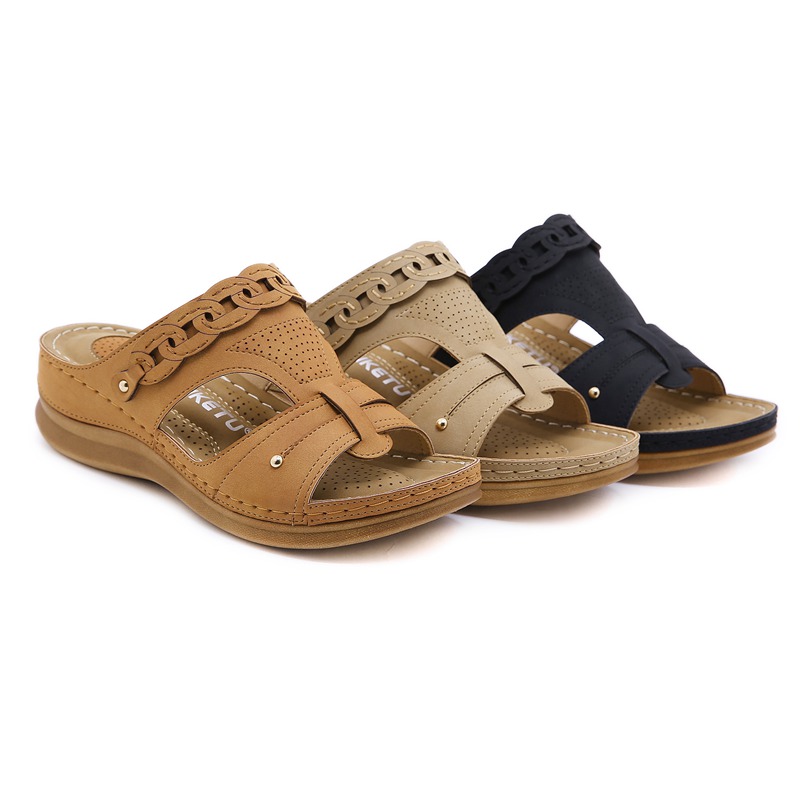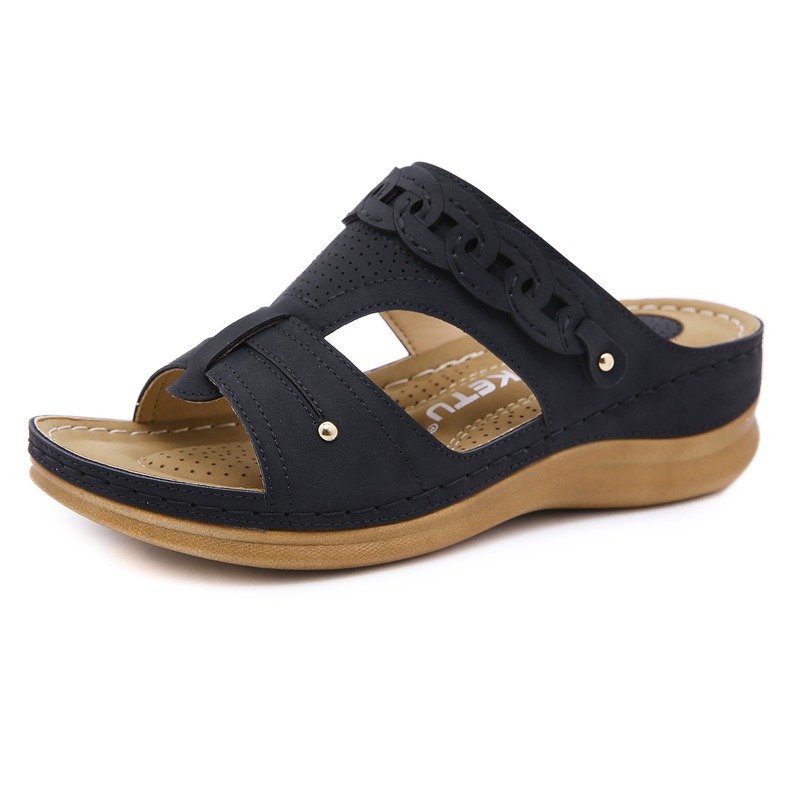 SIKETU summer new soft leather sweet ladies sandals wedges non-slip holiday beach sea sandals mom outdoor sandals