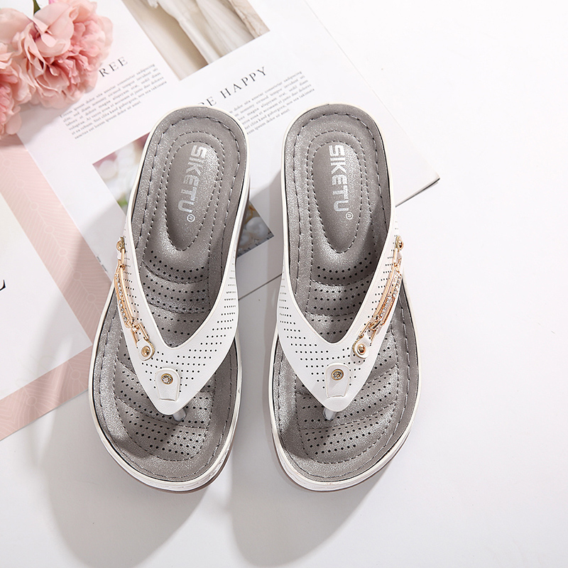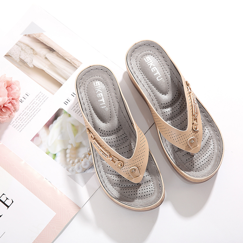Summer new lightweight women’s sandals slope with metal decoration casual women’s slippers non-slip ladies beach flip-flops