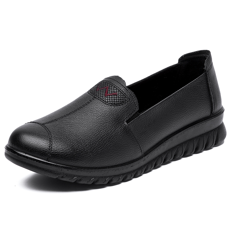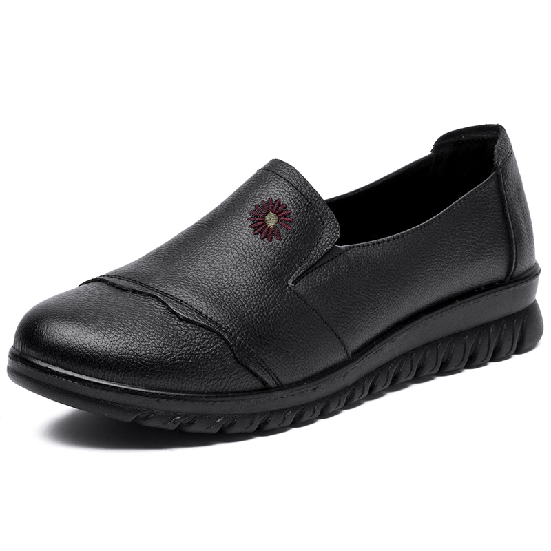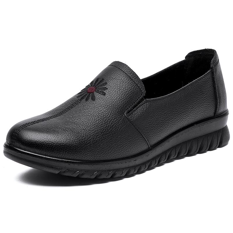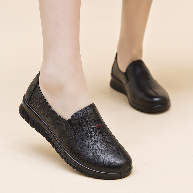 Spring and autumn mother shoes leather soft sole comfortable middle-aged and elderly single shoes non-slip ladies flat shoes