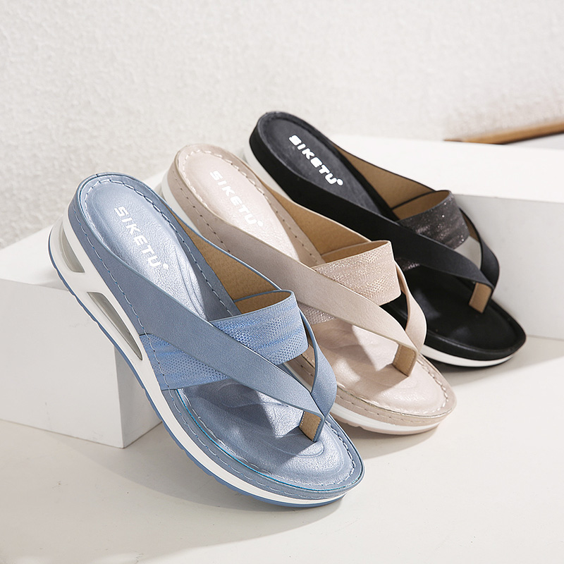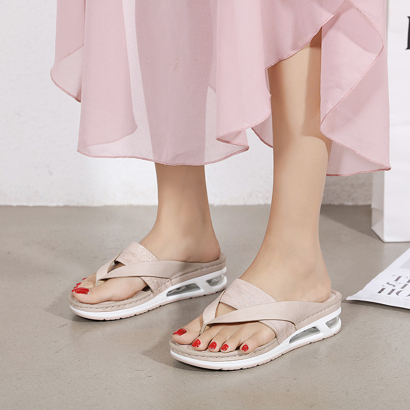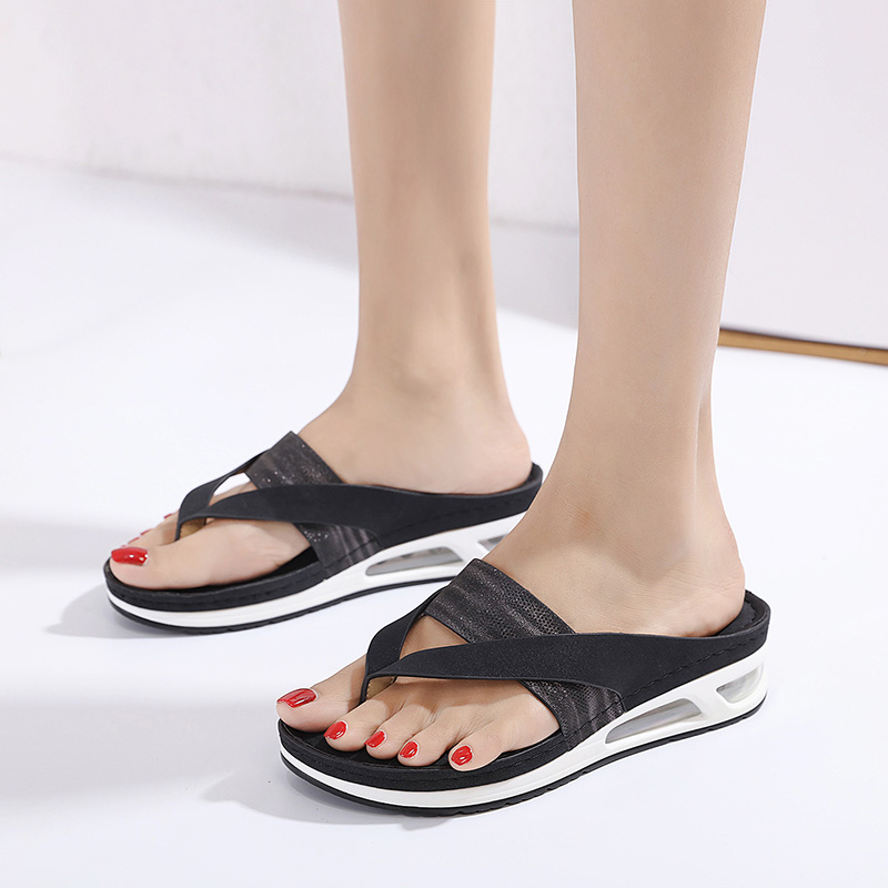 Summer Woman Sandals Leather Comfortable Beach Slippers Lightweight Fashion Air Cushion Women’s Mid-heels Flip flops