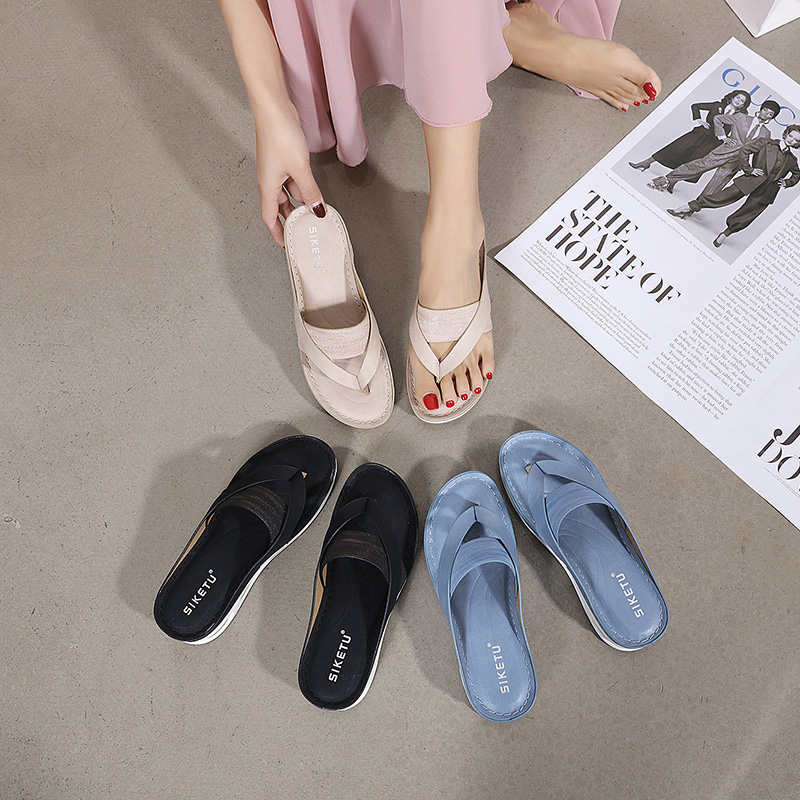 Cheap Slippers, Buy Quality Shoes Directly from China Suppliers:Summer Woman Sandals Leather Comfortable Beach Slippers Lightweight Fashion Air Cushion Women’s Mid heels Flip flops