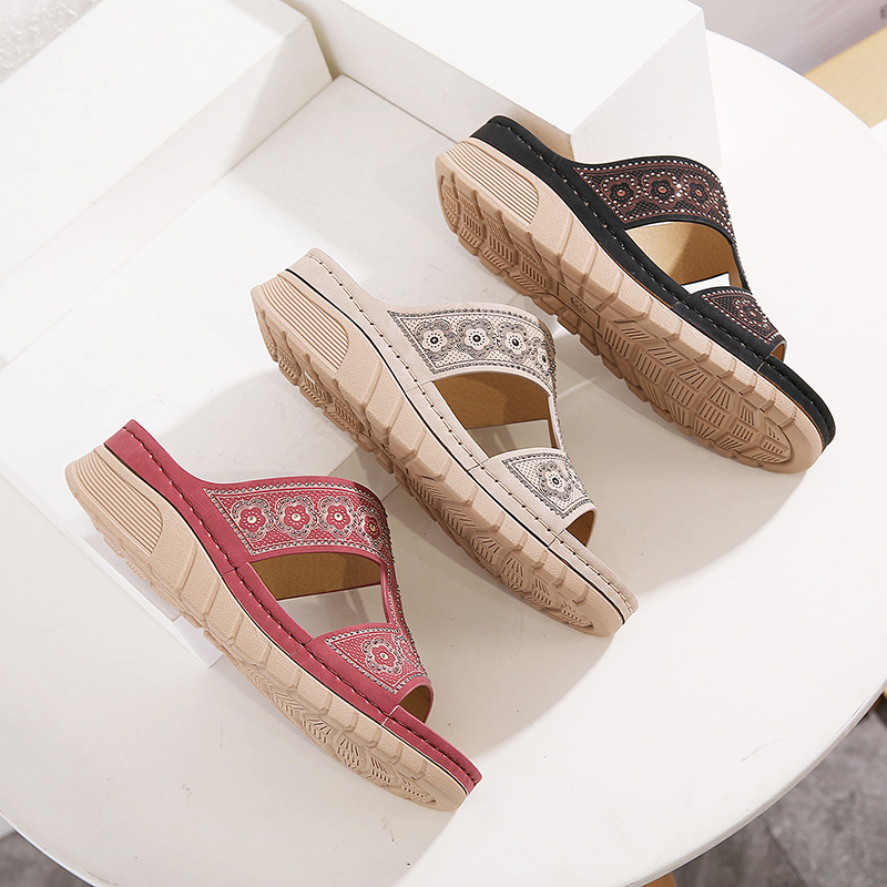 new ethnic style women’s sandals wedge heel soft sole light and comfortable rhinestone comfortable large size 42 slippers