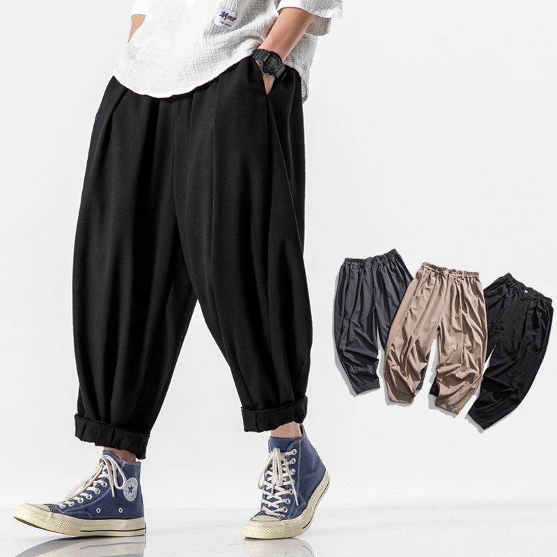 New Design Drawstring Harem Pants Men Baggy Jogging Pants Japanese Style Male Crotch Wide Leg Pants Casual Loose Trousers