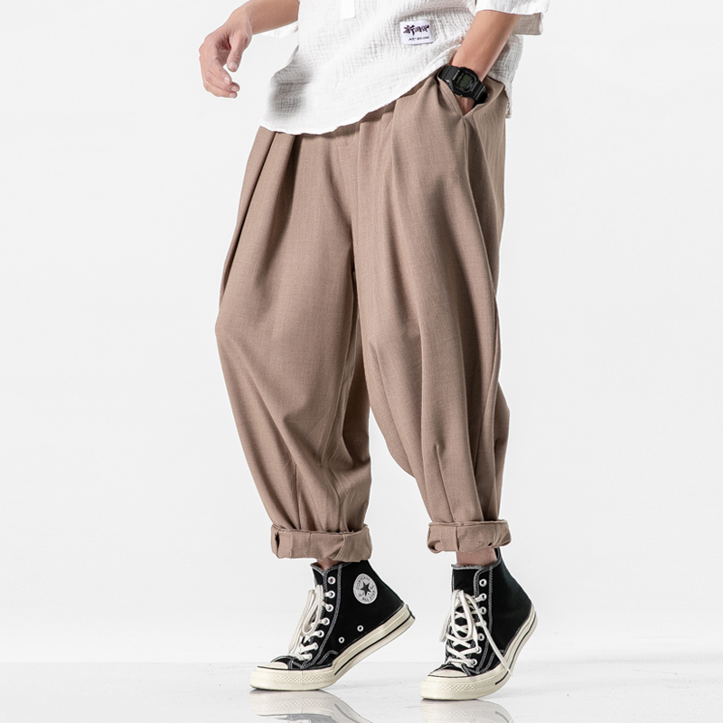 Cotton Mens Harem Pants Summer Male Casual Calf-Length Pants Printed Big Pocket Baggy Pants Trousers Men Streetwear