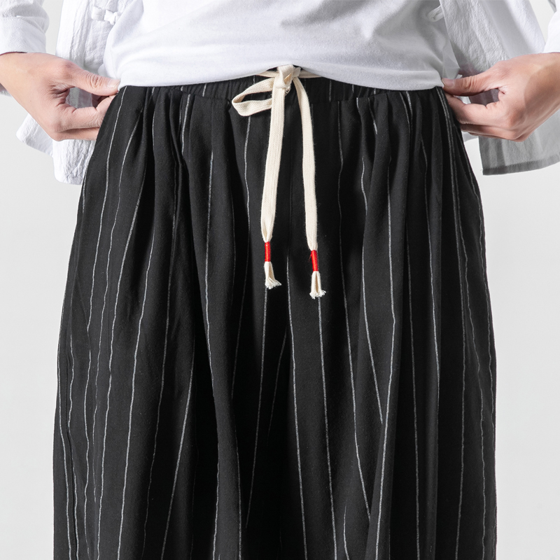 New Men‘s Autumn Cotton Linen Harem Pants Striped Fashion Korean Style Jogger Casual Loose Male Pants Trousers Streetwear