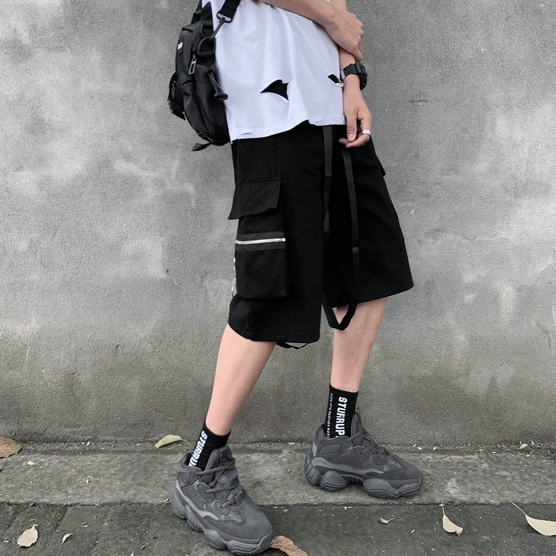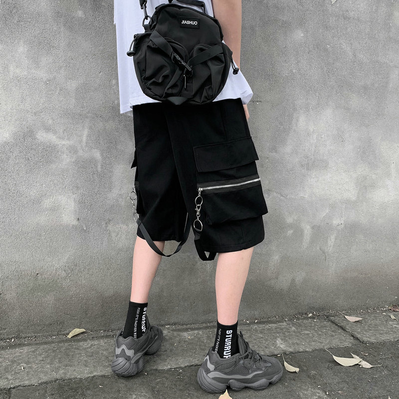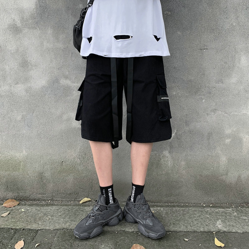 Summer Men Hip Hop Cargo Shorts Black Multi Pocket Military Bermuda Shorts Male Tactical Short Pants Streetwear