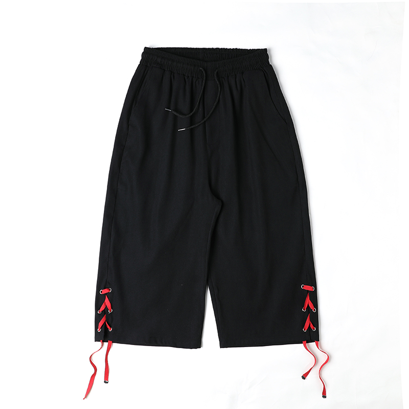 Streetwear Harem Pants Men Ribbons Casual Pants Men Slim Black Joggers Pants Side-pockets Man Trousers Spring