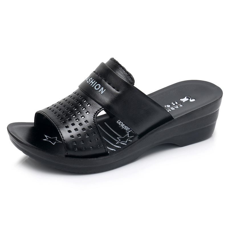 Summer women’s slippers with slope with large size middle-aged and elderly shoes non-slip fashion soft bottom women’s sandals