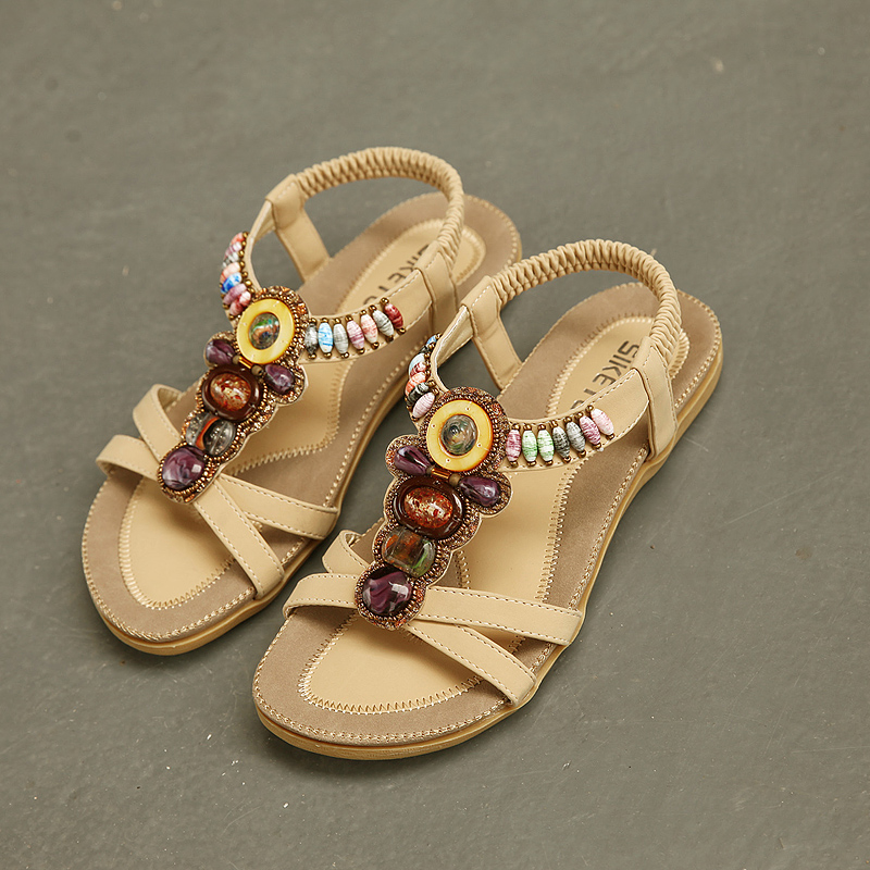 SIKETU summer new woman sandals stylish casual comfort Bohemia non-slip flat sandals beaded female beach shoes plus size
