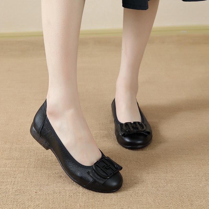 Spring autumn new leather mother flat single shoes middle-aged soft comfortable large size woman shoes grandmother flat shoes