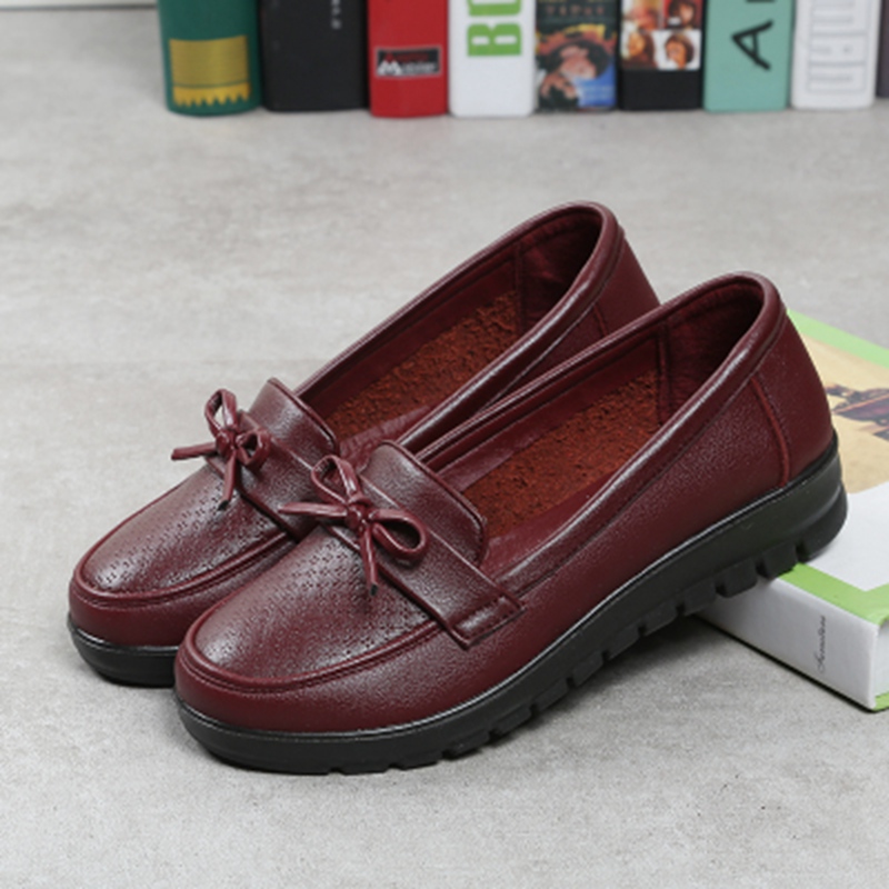 Spring autumn new leather mother flat single shoes middle-aged soft comfortable large size woman shoes grandmother flat shoes