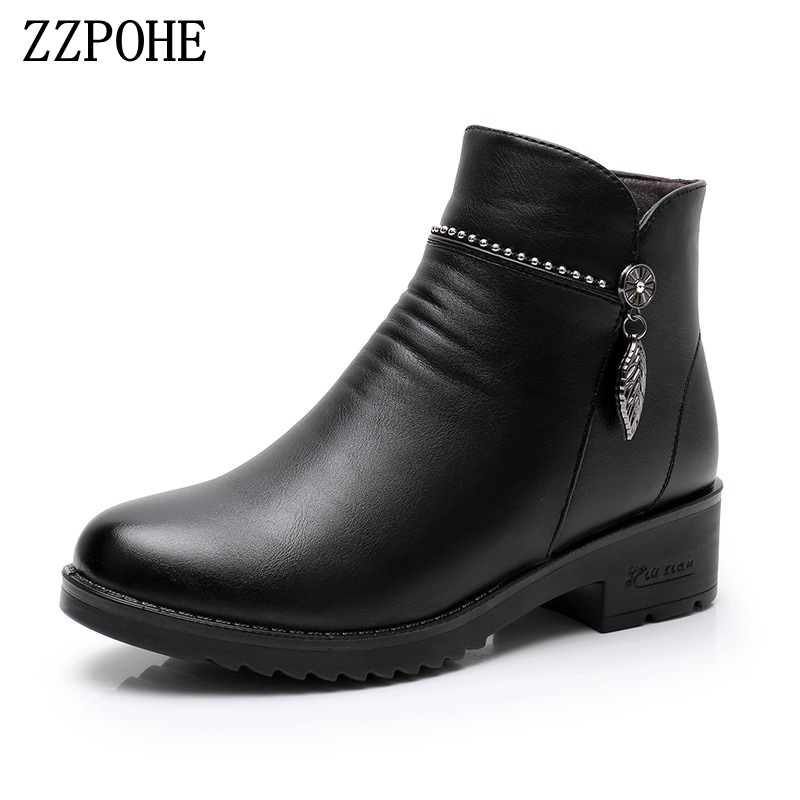 Women Boots Plus Size Warm Plush Fur Winter Boots Women Waterproof Leather Non-slip Flat Snow Ankle Boots ladies casual shoes