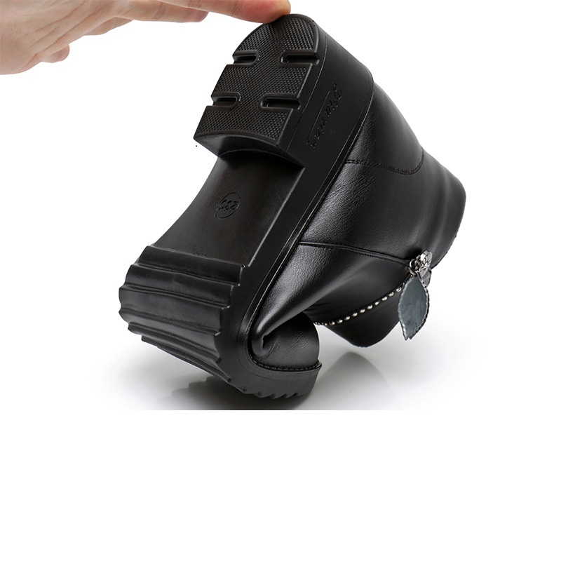 Women Boots Winter New Genuine Leather Wedge Boots Women Warm Waterproof Ankle Boots Female Cotton Shoes free shipping