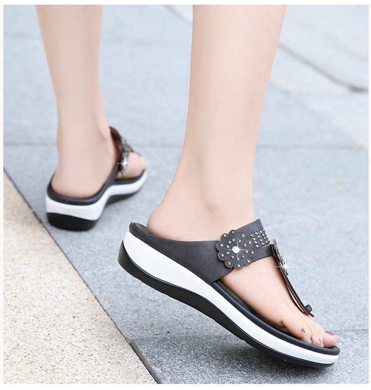Women’s Sandals New Female Leather Flats Wedges Open Toe Beach Shoes Women Casual Soft Flip Flops Slippers Sandals Plus Size