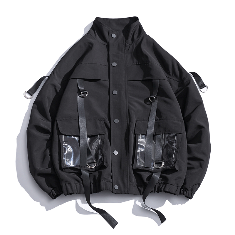 Streetwear Hip Hop Men Bomber Jacket Man Harajuku Ribbons Pockets Windbreaker Korean Style Women Fashions Clothing
