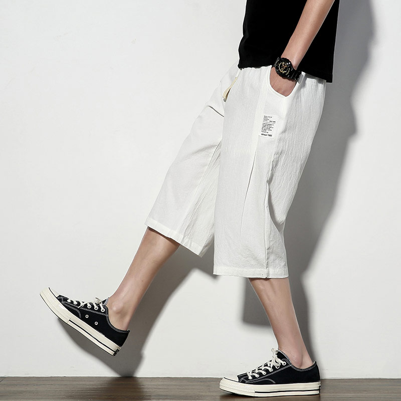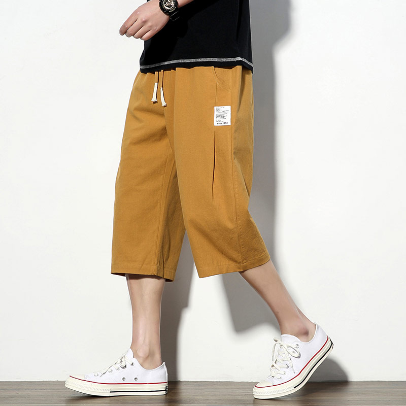 Streetwear Men’s Solid Color Joggers Pants Fashion Men Summer Casual Calf-Length Pants Street Elastic Waist Harem Pant Men