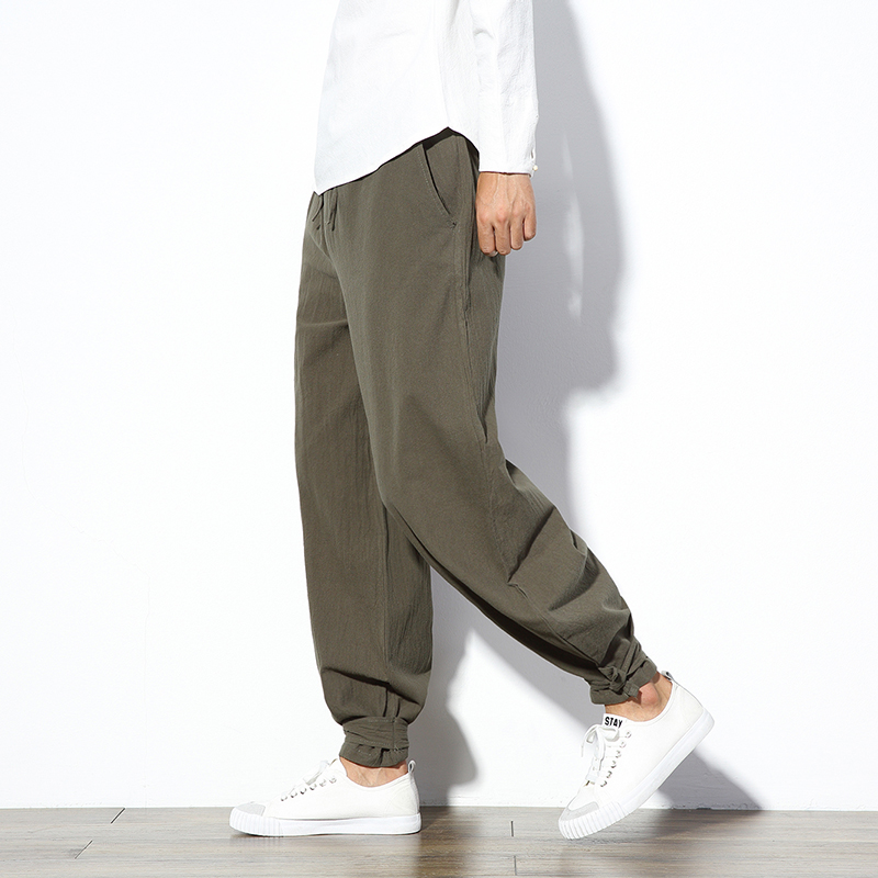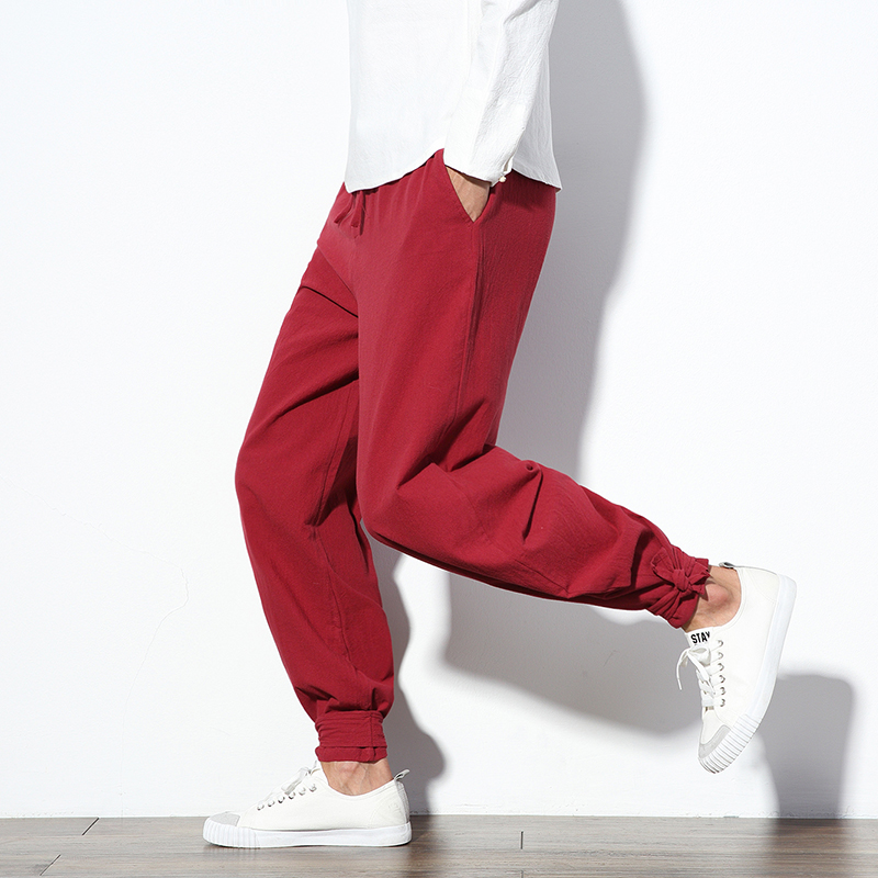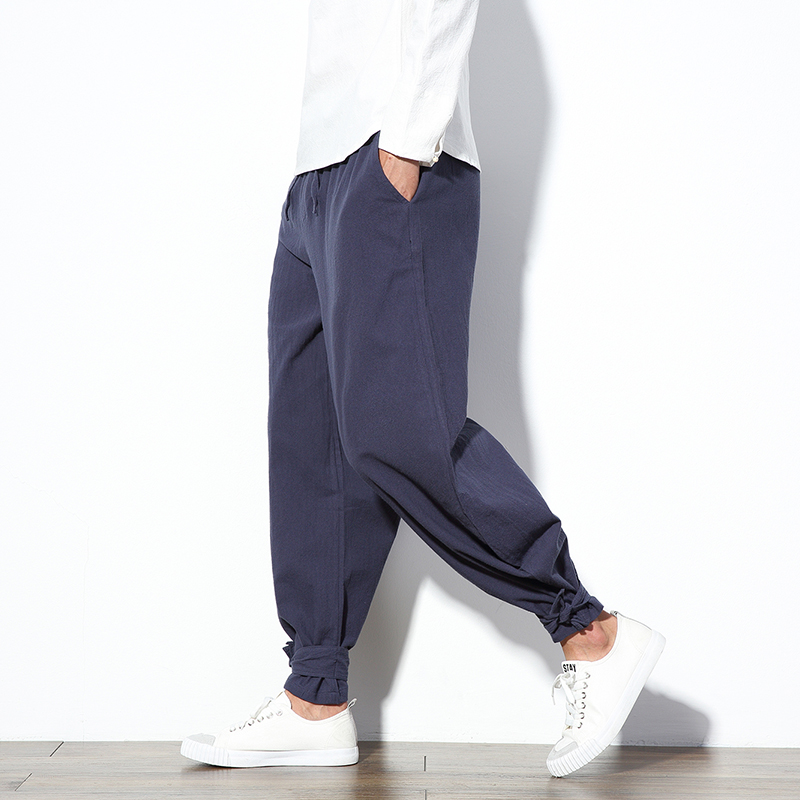 Chinese Style Cotton Linen Harem Pants Men Jogger Pants Male Trousers Chinese Traditional Cloths Fashion Plus Size 5XL