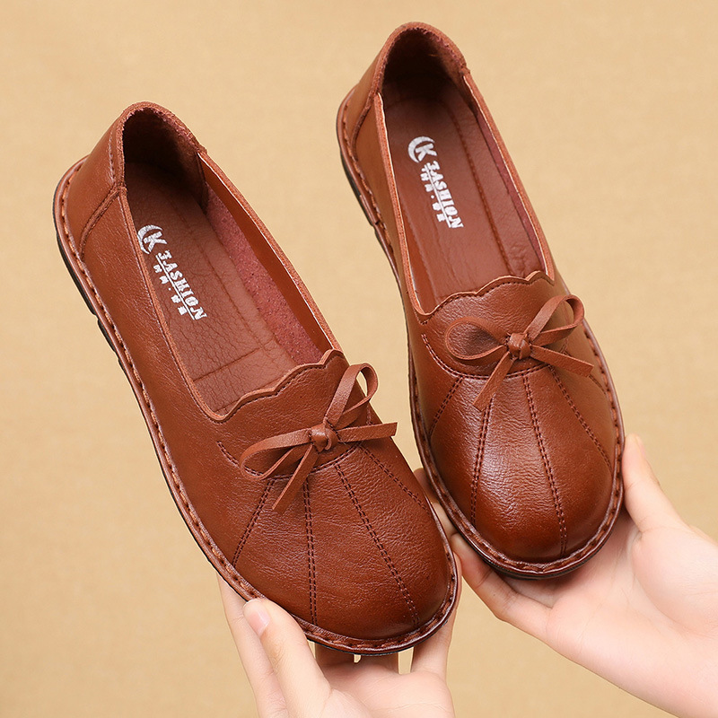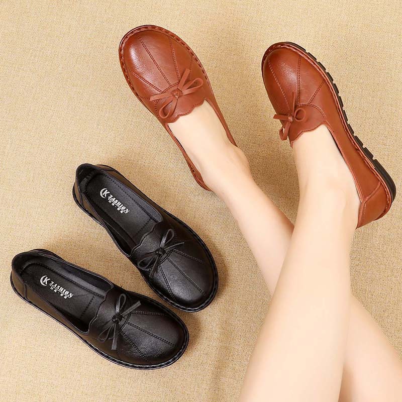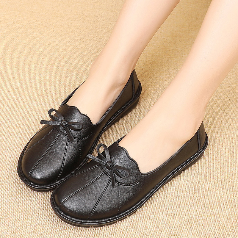 new Spring autumn fashion Genuine Leather Women Flat Shoes Ladies Soft Casual Slip On Work Shoes Mother single Shoes