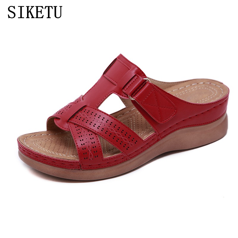 Cheap Slippers, Buy Quality Shoes Directly from China Suppliers:SIKETU New Summer Women’s Slippers Classic Retro Soft Leather Slope With Mom Sandals Outdoor Walking Beach Women’s Slippers