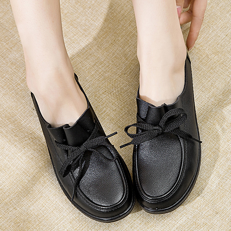 Women’s Shoes spring/autumn Genuine leather lace-up Slip-on women flat shoes Ladies Soft Casual Shoes Mother single Shoes