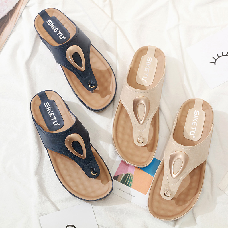 SIKETU summer new soft leather sweet ladies sandals wedges non-slip holiday beach sea sandals mom outdoor sandals